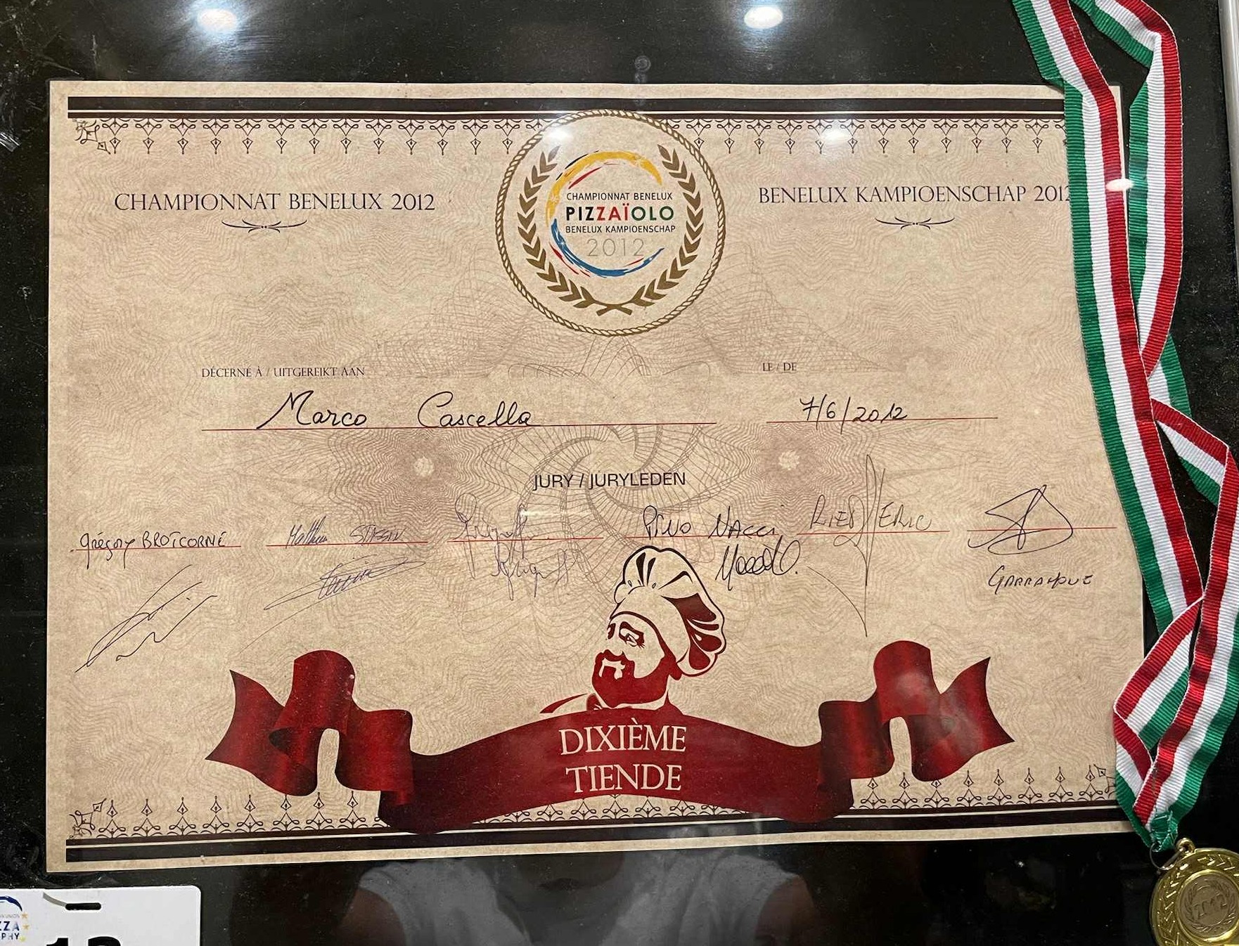 Marco behaalde de 10de plaats met de 'Al pesto' op de verkiezing voor de beste pizza in de BeNeLux 2012